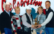 In recognition for their commitment to the industry, Celebrity Sales’ Tom Simmons and Janet and Mike Wilkins present Steve and Sue with the 2008 Craig Wilkins Memorial Showmanship Award.